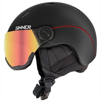 Le casque de ski Titan Visor de la marque Sinner est un casque de ski Ă©lĂ©gant qui offre beaucoup de protection et une sensation de confort. Le casque de ski a une construction In-Mold lĂ©gère qui lui confère une excellente protection. Ă€ l’aide d’un bouton Ă dĂ©gagement rapide et d’un bouton rotatif Ă l’arrière, vous pouvez rĂ©gler la taille correcte afin d’avoir toujours un ajustement ferme et confortable. La mousse faciale douce et une doublure en polaire douce dans le casque offrent un confort supplĂ©mentaire, la doublure en polaire Ă©tant amovible et lavable. De plus, le casque de ski a des revĂŞtements en caoutchouc que vous pouvez retirer pour ouvrir la ventilation. De cette façon, vous assurez immĂ©diatement une sensation de fraĂ®cheur et une circulation d’air optimale. La lentille miroir colorĂ©e incluse est de catĂ©gorie 2, ce qui la rend idĂ©ale pour les nuages lĂ©gers et la lumière du soleil moyenne. La lentille a un bon contraste, est anti-buĂ©e et Ă©quipĂ©e d’une protection UV. Grâce au revĂŞtement miroir, l’Ă©blouissement est Ă©galement supprimĂ© pour une meilleure vue. Enfin, la lentille est parfaite pour ĂŞtre portĂ©e par-dessus des lunettes de vue.