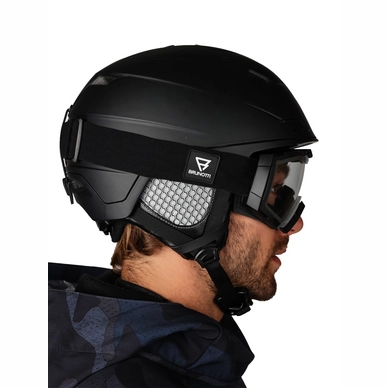 Il s’agit du masque de ski Thunder de la marque Brunotti. Ces masques robustes ont une grande monture noire en polycarbonate. Cela rend le cadre extrĂŞmement solide et flexible. Ceci, en combinaison avec une triple couche de mousse Ă l’intĂ©rieur, garantit que les masques de ski sont très confortables Ă porter. La couche de mousse garantit Ă©galement que l’intĂ©rieur reste sec et que les verres restent en place. L’Ă©cran du masque de ski est de couleur noire et appartient Ă la catĂ©gorie 4. L’Ă©cran est donc idĂ©al pour les rayons (très) lumineux du soleil. L’objectif s’adapte Ă©galement automatiquement aux circonstances. Cela signifie que vous n’avez pas Ă changer d’objectif. Très utile?! C’est aussi une lentille sphĂ©rique, ce qui lui donne un large champ de vision avec moins d’Ă©blouissement dans la neige. Autre grand avantage de ce masque de ski, l’Ă©cran et la monture sont ventilĂ©s de haut en bas. Cette circulation d’air garantit qu’il y a moins de risque de condensation, de sorte que les verres ne s’embuent pas. Les doubles verres rĂ©duisent aussi le risque de condensation. Les masques de ski sont complĂ©tĂ©s par une bande Ă©lastique confortable avec le logo Brunotti dessus.
